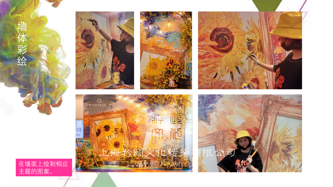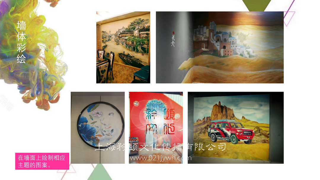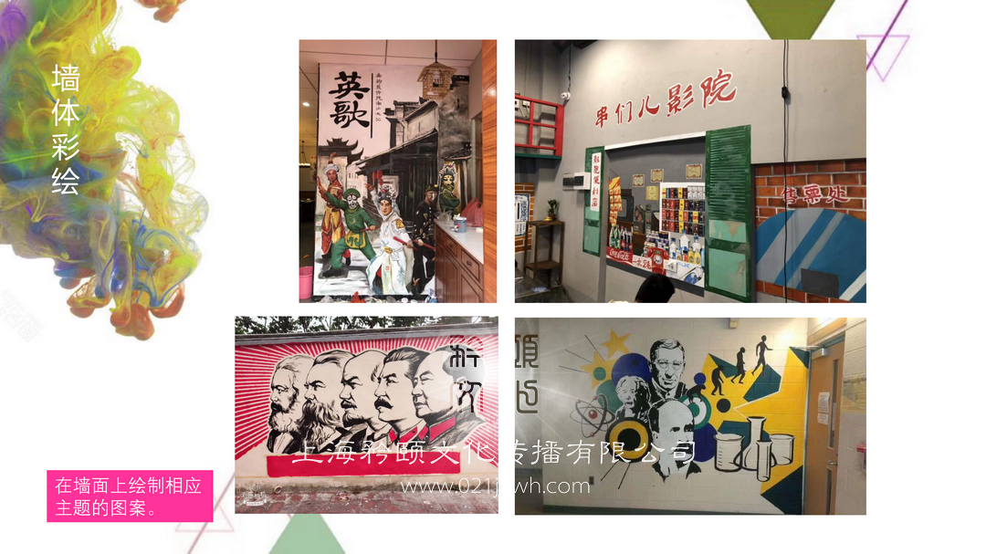 墻體彩繪在墻面上繪制相應主題的圖案。