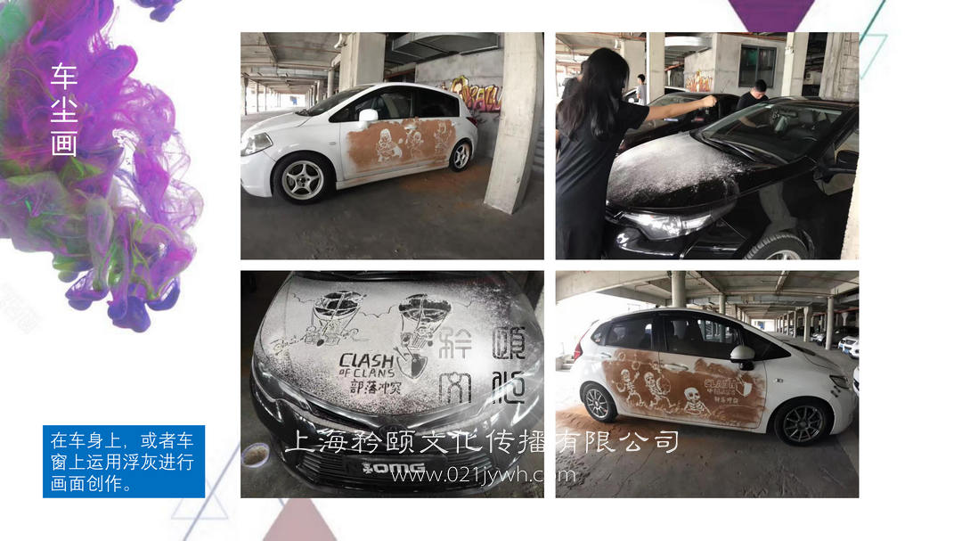 車塵畫在車身上,或者車窗上運用浮灰進行畫面創作。