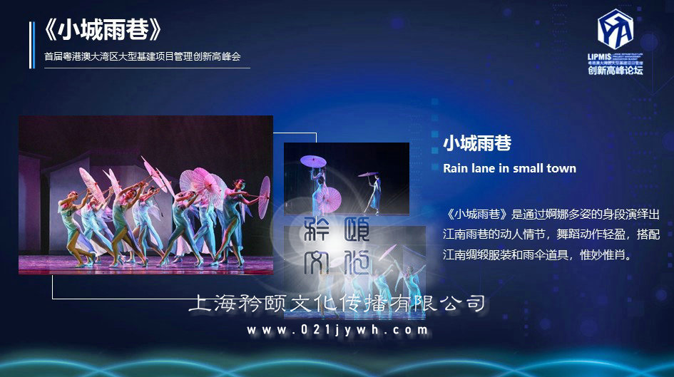 小城雨巷,《小城雨巷》是通過婀娜多姿的身段演繹出江南雨巷的動人情節,舞蹈動作輕盈,搭配江南綢緞服裝和雨傘道具,惟妙惟肖。