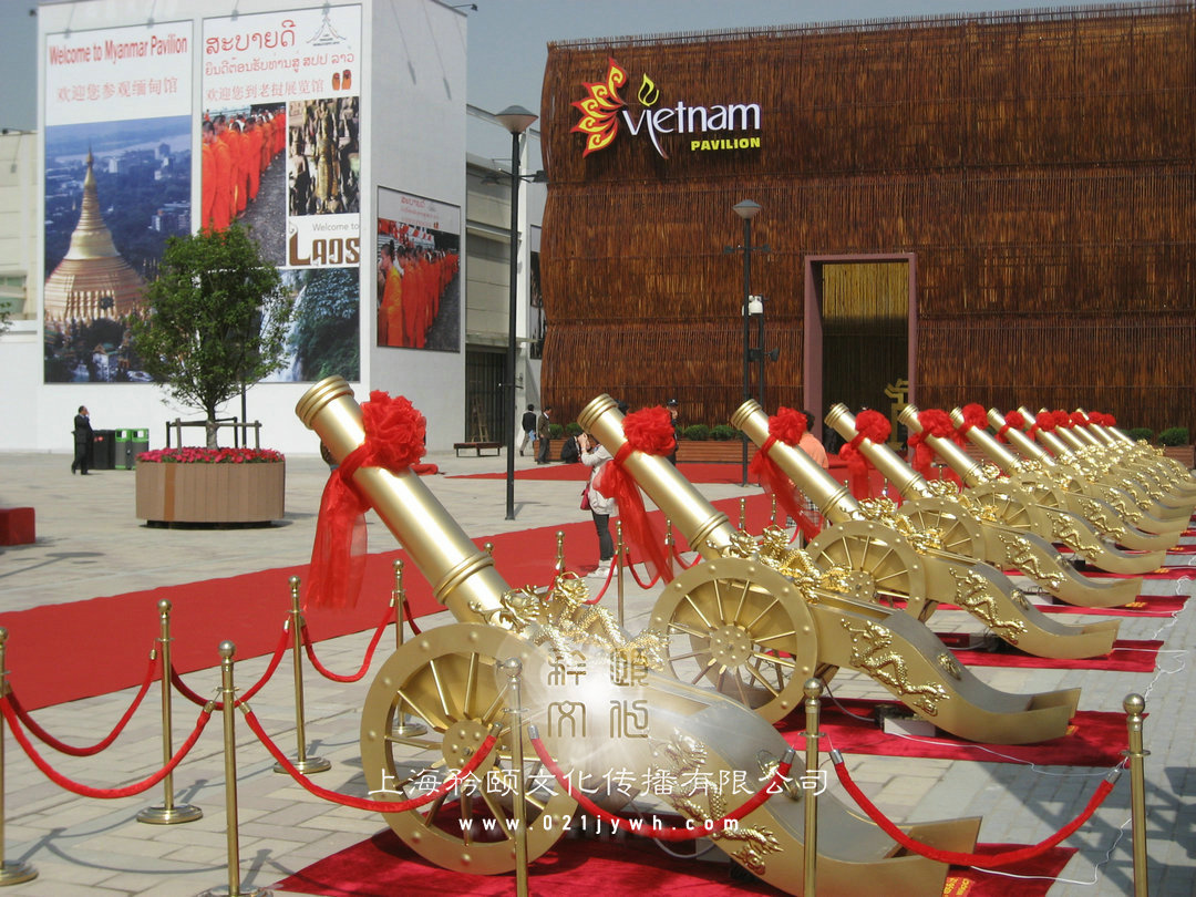 皇家禮炮:作為上海慶典策劃的禮賓花釋放載體。有多種。如皇家禮炮(俗稱大炮)、迫擊炮(也叫小鋼炮)?;始叶Y炮為金色,長度3米、高度2米、寬度1米,可連發、可單發、也可齊發。外觀高貴典雅!頗具皇家風范。獨具非凡高貴氣派,外形線條非常優美,故以皇家禮炮為名。 主要適用于大型戶外場所慶典活動使用。釋放的同時會伴有類似大炮的轟鳴聲,叫響炮彈,振奮人心