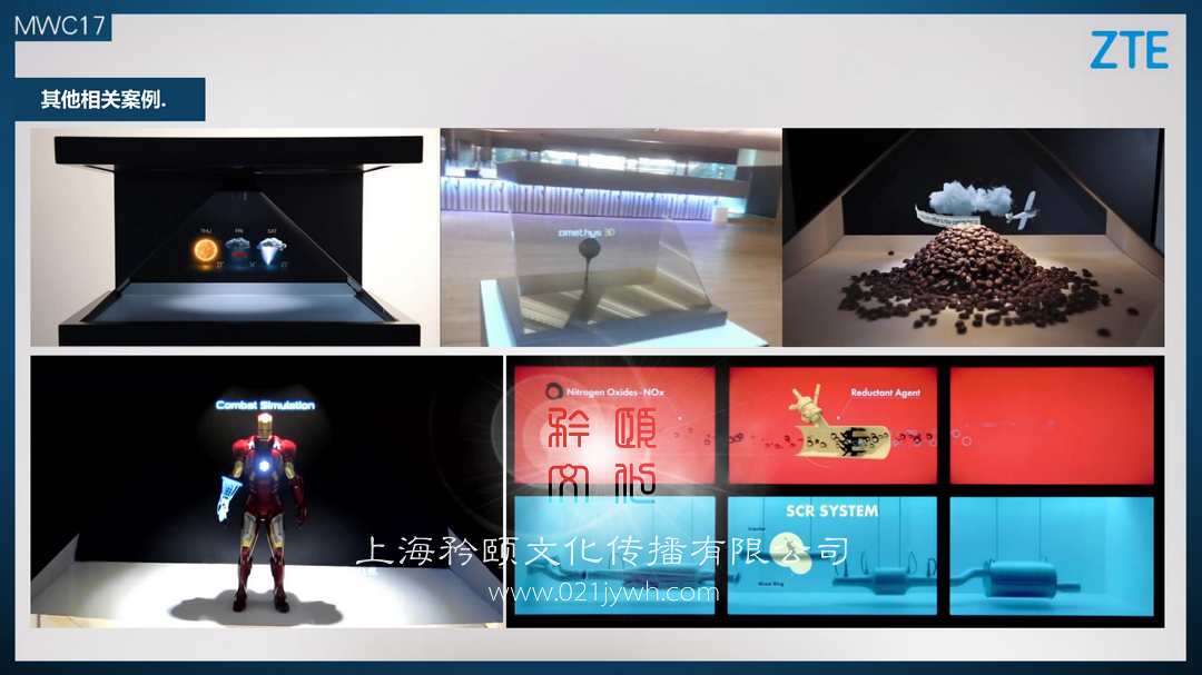 立體懸浮影像。其特色是丌僅可以全息透明成像,還可以成像面后面的實物相結合,極大地渲染規覺效果,帶來虛實相結合的有趣效果。體積可以從1立方米至8立方米等。