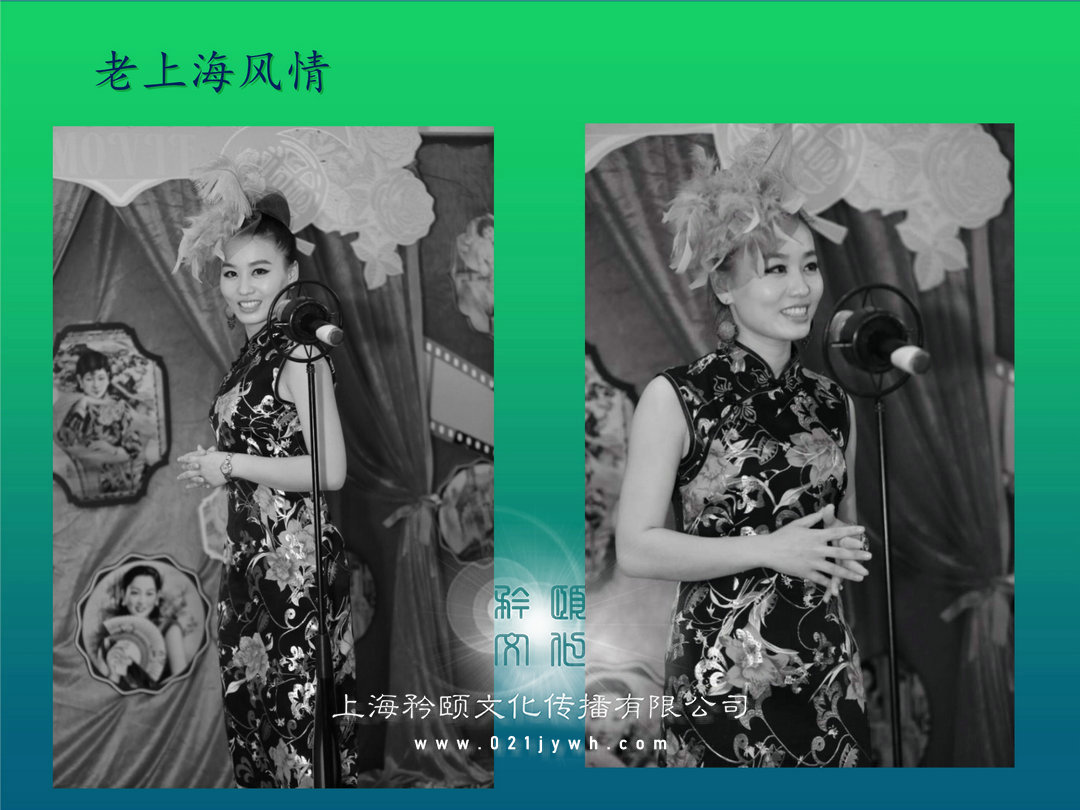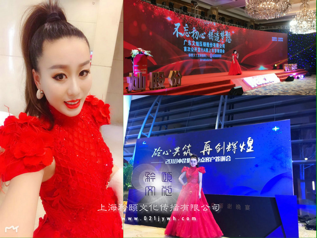 在上海各類活動中擔任演出歌手嘉賓:上海旅游節、浦東新區部隊慰問演出、北京現代年會、好爾科技十周年、奔馳汽車、千子晨婚紗攝影、匯源集團新品上市發布會及晚宴、東亞銀行開業慶典、上海時代廣場萬圣節PATTY、斯波登大酒店圣誕晚會、東方鵲橋節、樂晨大酒店圣誕狂歡、伊美公司新年團拜會、西門子上海低壓斷路器有限公司07新年晚會、國大藥房5周年慶典晚宴、浙大網新上海分公司開業慶典、年鄭州日產皮卡汽車上海巡展活動、長城精靈上市、聯想奧運獻禮高校行、豐田車展、王老吉全國巡演、第二屆萬科社區大聯歡巡演晚會、上海旅游節、購物節楊浦區開幕式活動、新世代全順汽油車上海雄威上市發布會、老鳳祥璀璨之夜—上海旅游節楊浦、車巡游發車儀式等等、豫園中秋游園會開幕式、世博志愿者頒獎典禮、老板電器晚宴