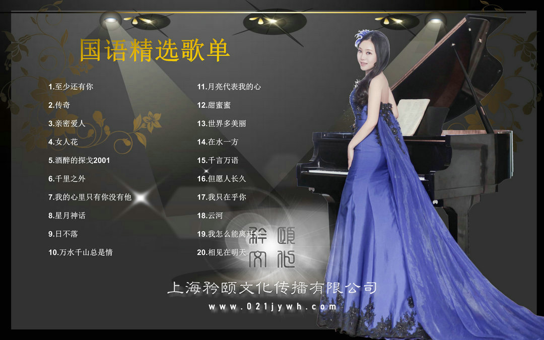 1.至少還有你2.月亮代表我的心3.傳奇4.甜蜜蜜5.親密愛人6.世界多美麗7.女人花8.在水一方9.酒醉的探戈10.千言萬語11.千里之外12.但愿人長久13.我的心里只有你沒有他14.我只在乎你15.星月神話16.云河17.日不落18.我怎么能離開你19.萬水千山總是情20.相見在明天