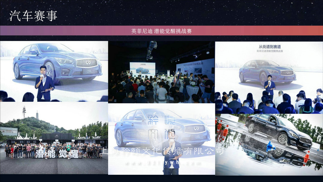 2017年西安國際會展中心雪佛蘭展臺2017年英菲尼迪潛能覺醒挑戰賽2017年阿拉善國際英雄會一汽豐田展臺一汽大眾全新一代邁騰上市發布會2017MMA綜合格斗上海賽區總決賽2017全新一代捷豹路虎換芯登場發布會2018青島國際車展紅旗展臺馭賽道繹傳奇2018BMW東南區賽道體驗目騰訊科技品牌推介會網絡大電影《青春喂了狗》2陜西高校行優悅李寧十公里路跑聯賽·西安站李小鵬西安粉絲見面會