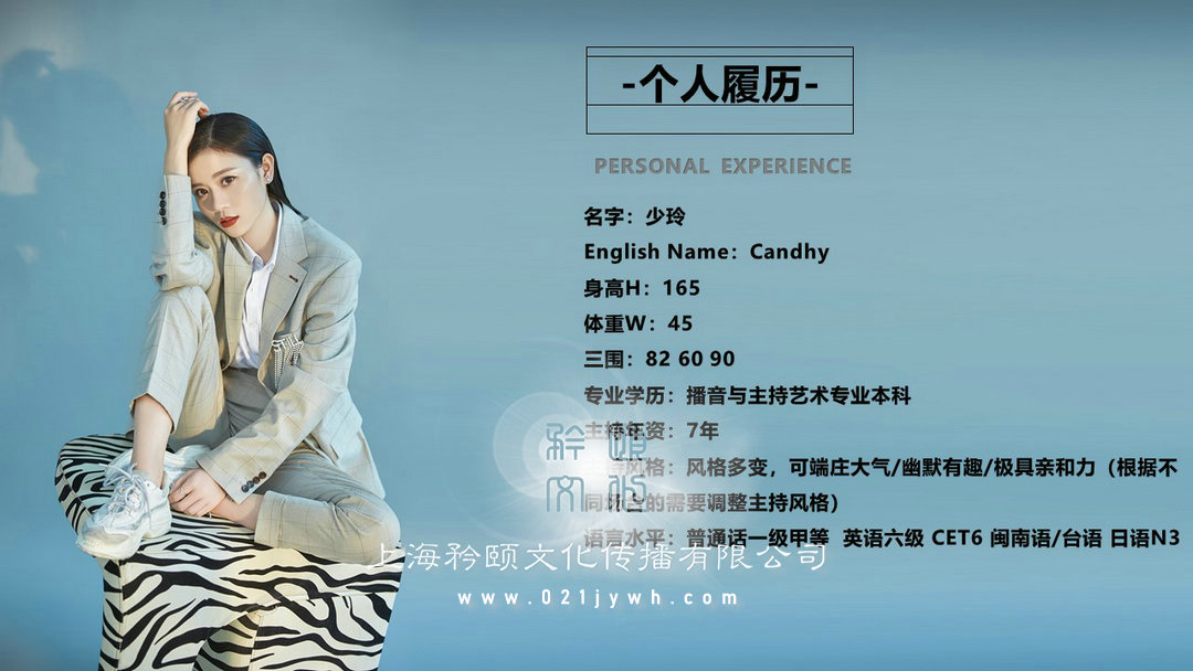 主持風格:風格多變,可端莊大氣/幽默有趣/極具親和力(根據不同場合的需要調整主持風格)
