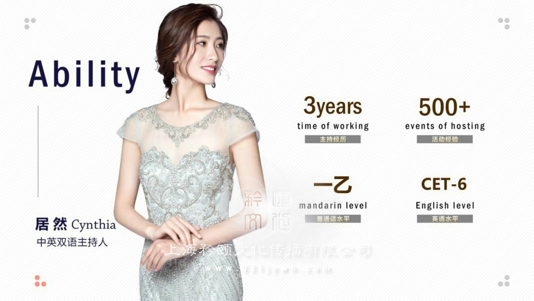 思維敏捷,擅長脫稿主持,具備良好的舞臺感染力,善于調動現場觀眾的氣氛,極強的語言功力,靈活機敏的控場能力,在舞臺上無論遇到何種突發狀況/都能巧語解難/善于互動,輕松自如駕馭各種場合活動。為人極易相處/服從安排,杜絕公主病性格。