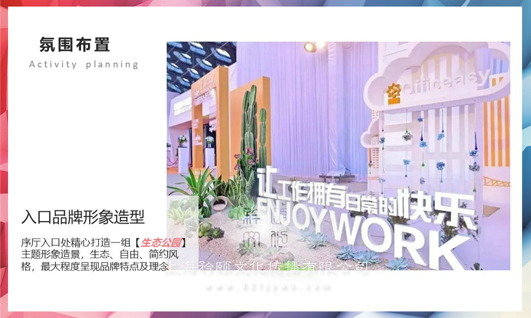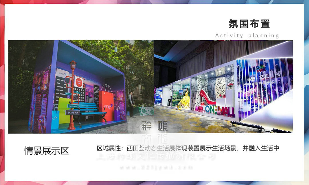 將【上海xx薈】特點和核心生態公園+主題街區+沉浸式廣場”展示內容通過創意打造的形式在現場進行呈現;