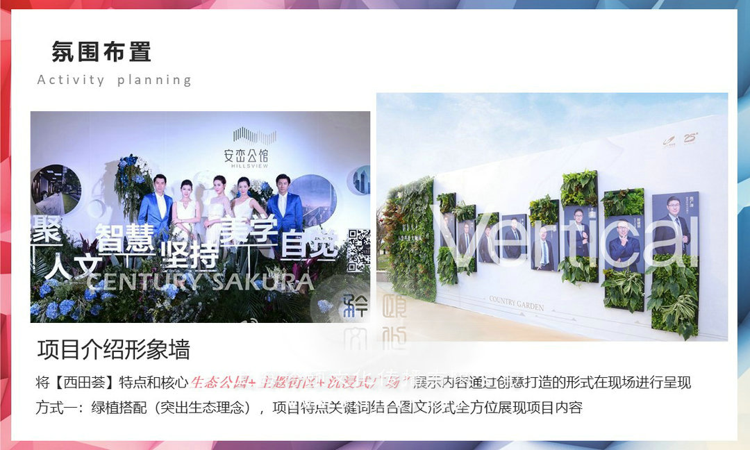 方式一:綠植搭配(突出生態理念),項目特點關鍵詞結合圖文形式全方位展現項目內容;