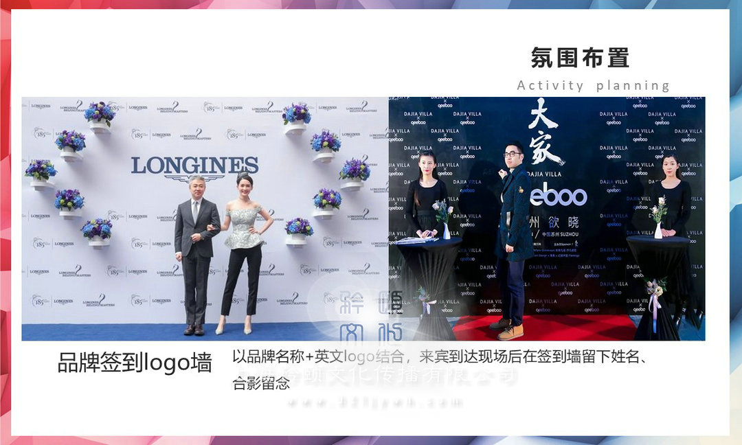 2.活動策劃,策劃慶典活動,開業奠基,商業巡演,路演,品牌推廣活動,年會、周年慶典、客戶答謝會、商業開盤、節慶活動,促銷活動等
