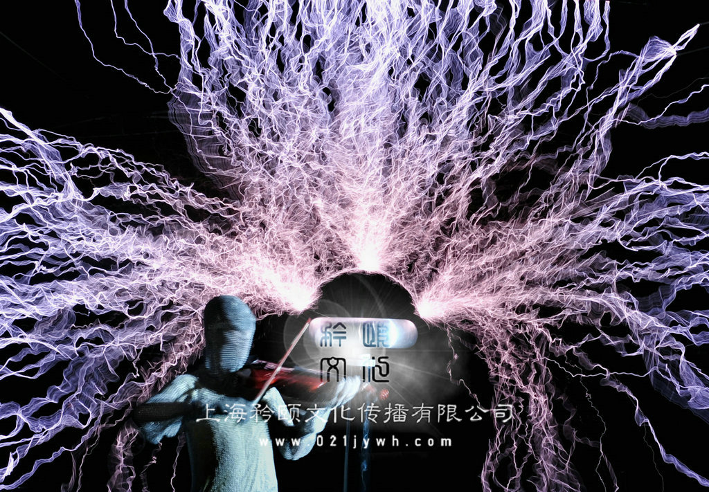 特斯拉線圈又叫泰斯拉線圈,因為這是從"Tesla"這個英文名直接音譯過來的。這是一種分布參數高頻共振變壓器,可以獲得上百萬伏的高頻電壓。特斯拉線圈的原理是使用變壓器使普通電壓升壓,然后經由兩極線圈,從放電終端放電的設備。通俗一點說,它是一個人工閃電制造器。 節目演出者通過專業的設備做出了各種各樣的閃電效果,制造出了眩目的人工閃電。