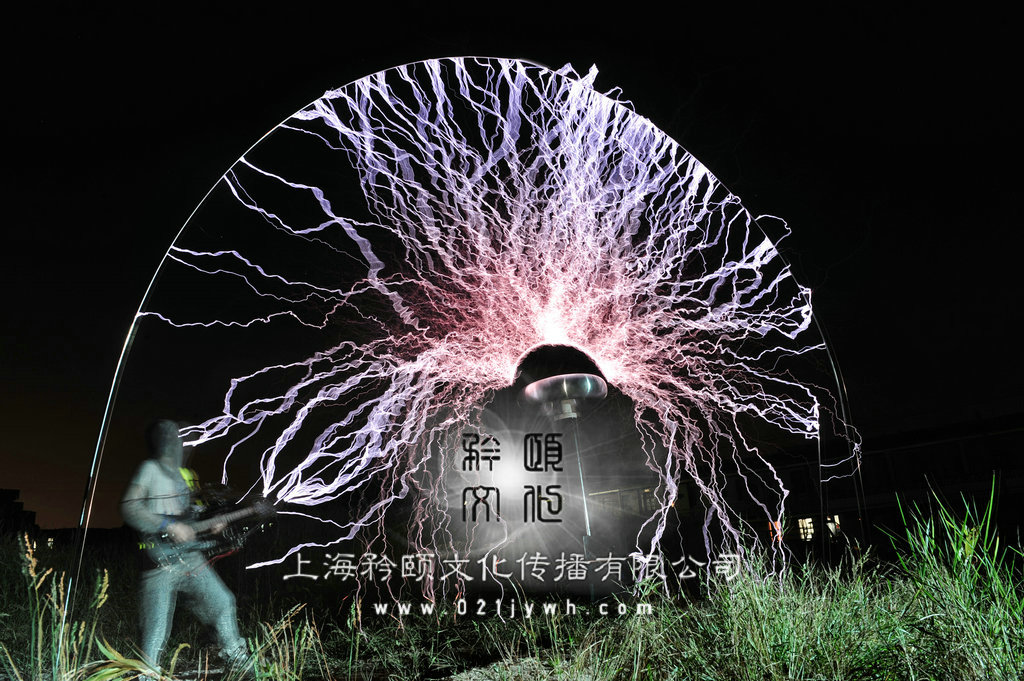 1、舞臺+人造閃電表演、無線點亮燈管等