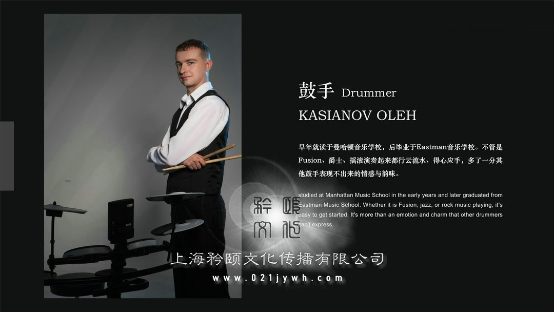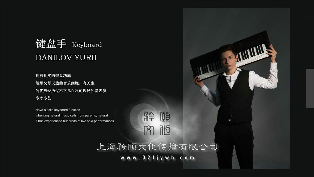 外籍樂隊鍵盤手:擁有扎實的鍵盤功底,繼承父母天然的音樂細胞,有天生的優勢經歷過不下幾百次的現場獨奏表演,多才多藝。