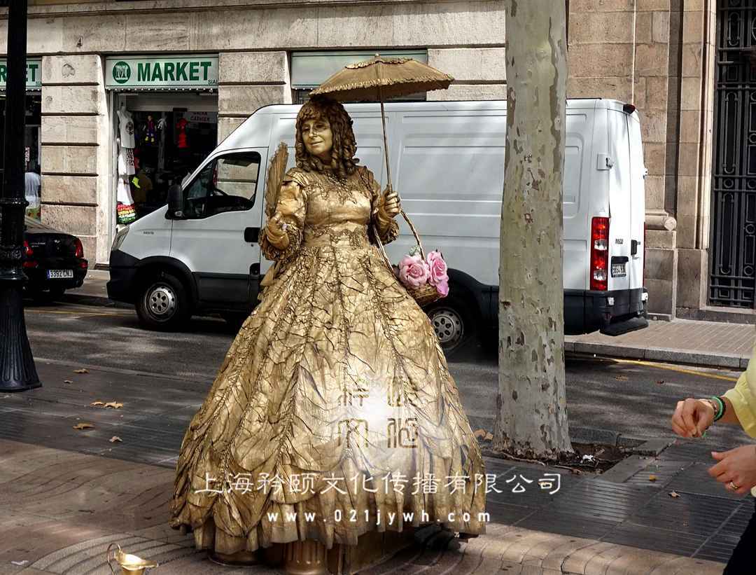 人體雕塑屬于行為藝術的一種,起源于西方國家,通過真人涂繪,達到雕塑的逼真效果,配以肢體語言,向人們展示其藝術內涵。它是用顏料和模特的結合創造出一種雕塑的效果。人體雕塑的扮演者在一段時間內變換不同的造型,給參觀者一種奇特和神秘的感受。這樣的藝術表現形式與商業化活動相結合,既能給參觀者高雅的藝術享受,又能給商業活動造成一大宣傳亮點,使商家在宣傳檔次上提高很大一個臺階,不再是以前那種傳統的禮儀展示。該種形式所產生的聚集人氣和吸引顧客效應非常巨大,因為它能給顧客帶來一種全新的視覺感受和文化內涵。