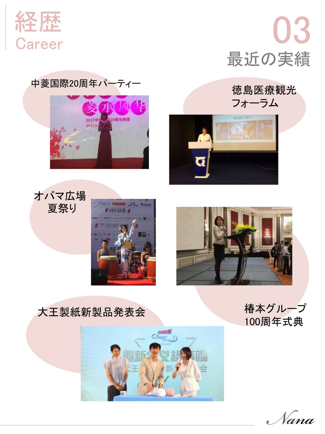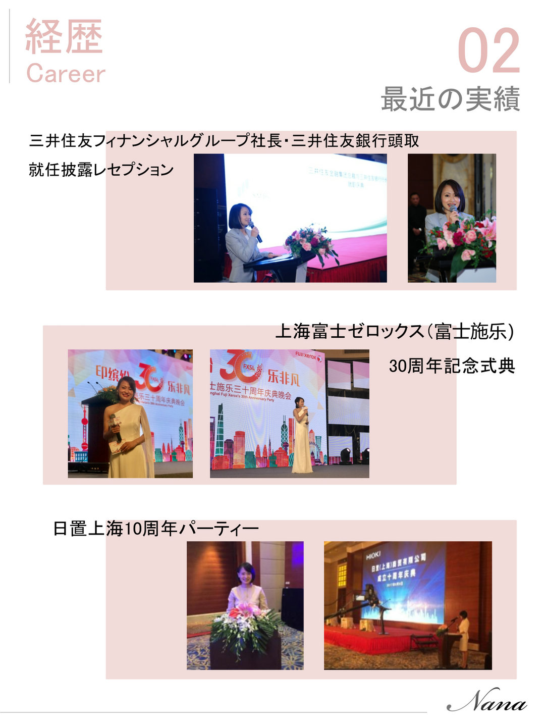 各種イベント、式典、セミナー、萬博パビリオン、ライブの司會(huì)など數(shù)多くの経験をもっています。(中國語?日本語どちらでもOK)